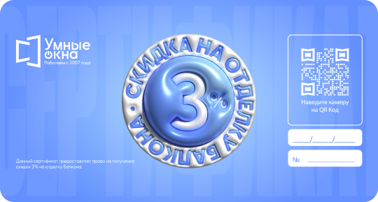 Скидка 3% на отделочные работы балкона или лоджии при заказе в период действия акции «Выгодные балконы».